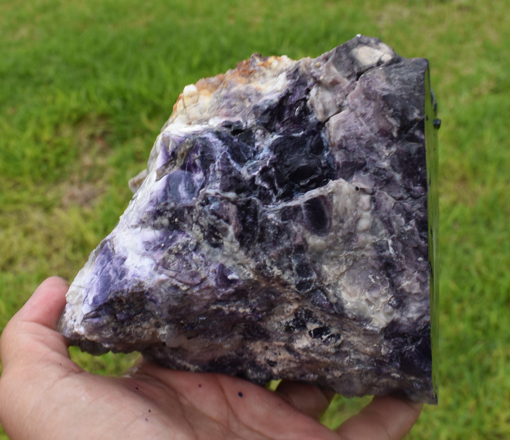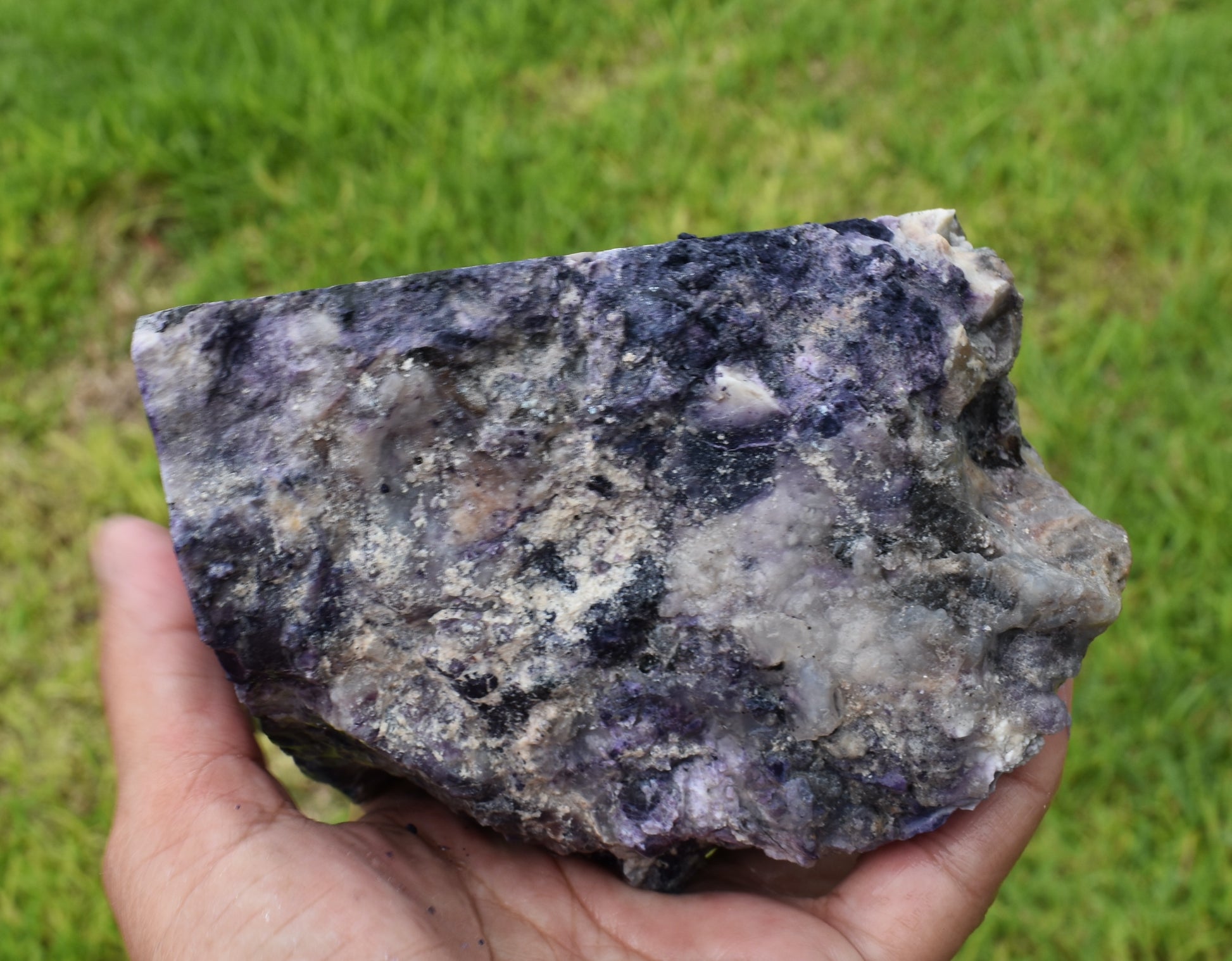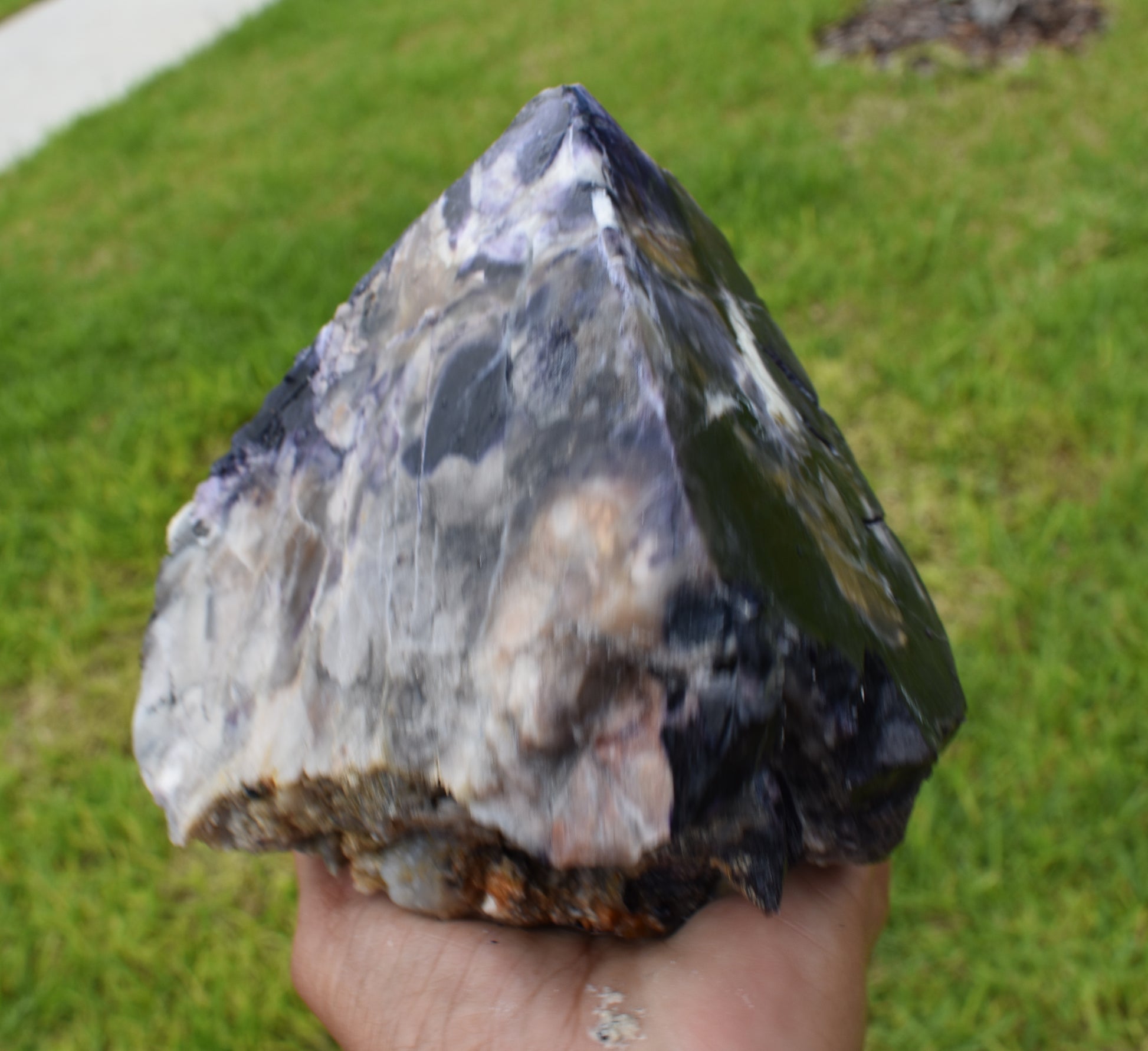 Tiffany Stone is composed of varying combinations of minerals such as bertrandite (beryllium silicate), beryl, calcite, chalcedony, cobalt, dolomite, fluorite, manganese oxide, rhodonite, quartz and zinc. The purple color that characterizes Tiffany Stone was created by fluorine gases, while the distinct black-colored veins were caused by manganese oxide; all of which were sealed within the sedimentary layers, becoming opalized over time.